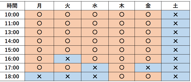 ※土曜日に関しましては、ご相談は承っておりますのでご連絡ください。