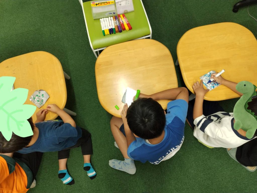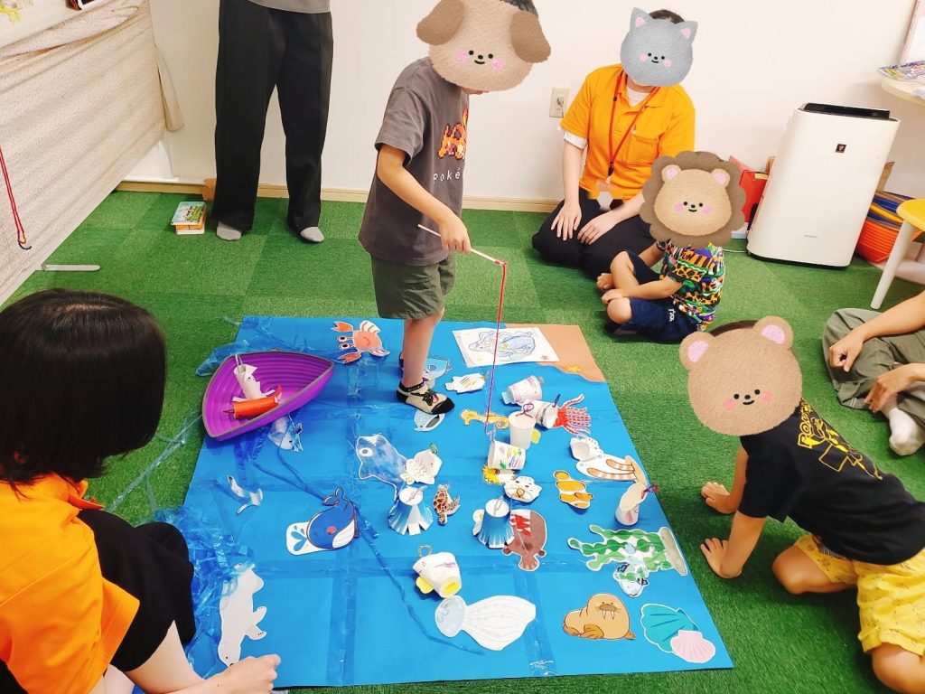 背びれやしっぽがついた紙コップの魚に、おのおのの模様を描いてもらいました🐠🪸