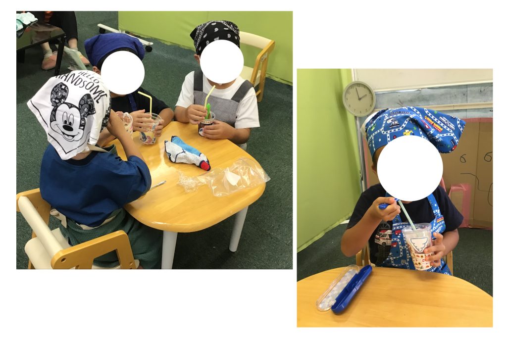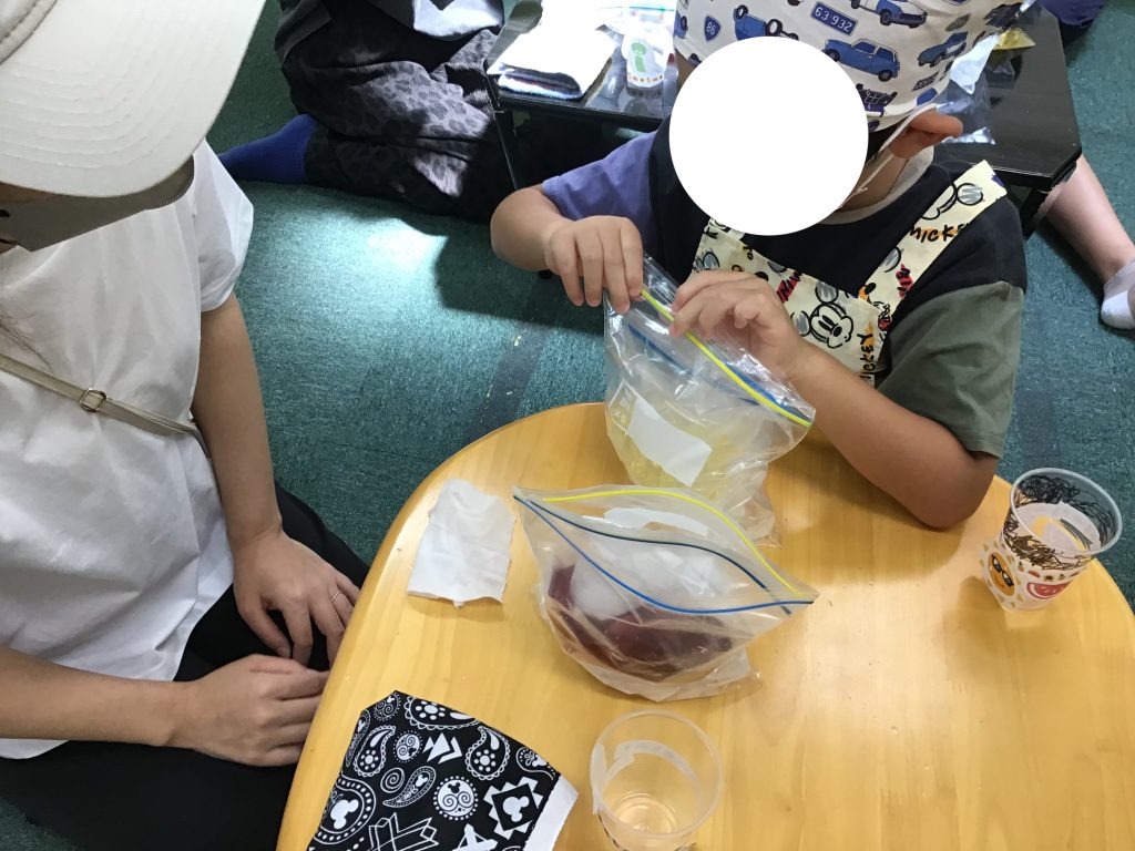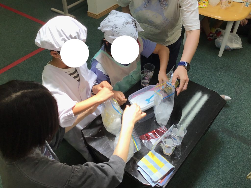 8月のイベントでは、氷と塩を使ってジュースからシャーベットになる実験&クッキングイベントを行いました💖