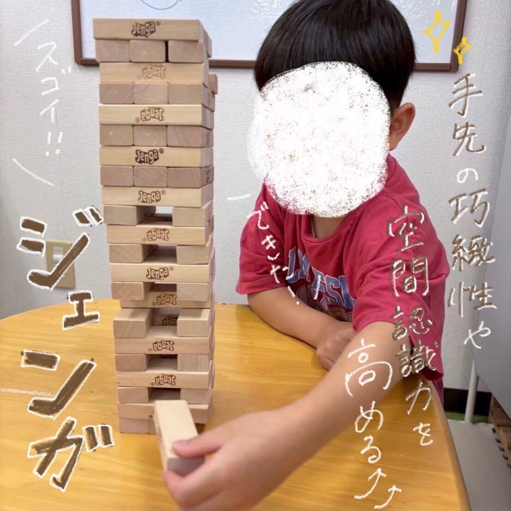 ブロックをゆっくり引き抜く、積み重ねるという動きで、手指のコントロールや巧緻性が養われます🤏🏻