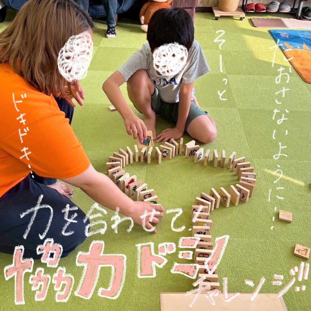 先生と協力してドミノにチャレンジしています✨