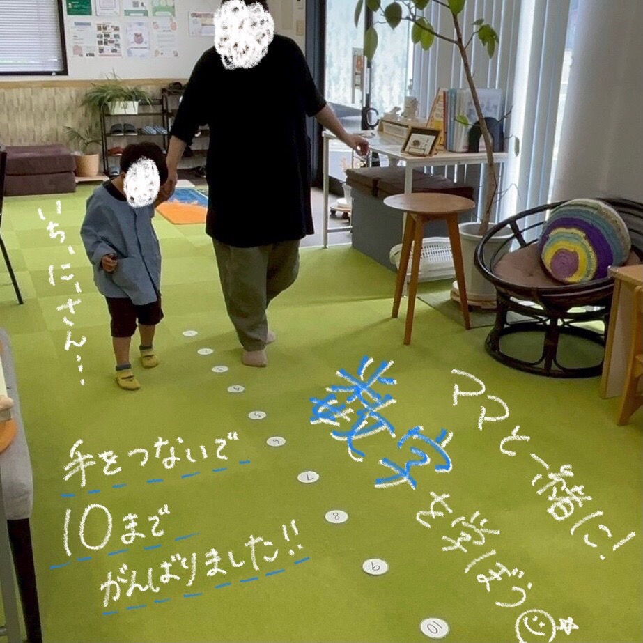 数字が並んでいる横を1歩ずつ歩いて、「1、2、…」と数字を読みながら進んでいきます🤝🏻