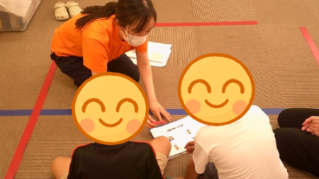 お話している先生の方をしっかり見て説明を聞いています(`・ω・´)b