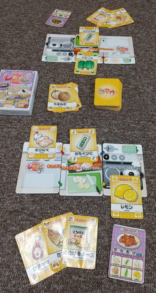 具材カードを表に向ける遊び方は、一見すぐ相手に手持ちカードがわかってしまって楽しくないのでは、と思いますが、最後の1枚が誰がもっているか、いつ出るかとワクワクドキドキと楽しめます😆