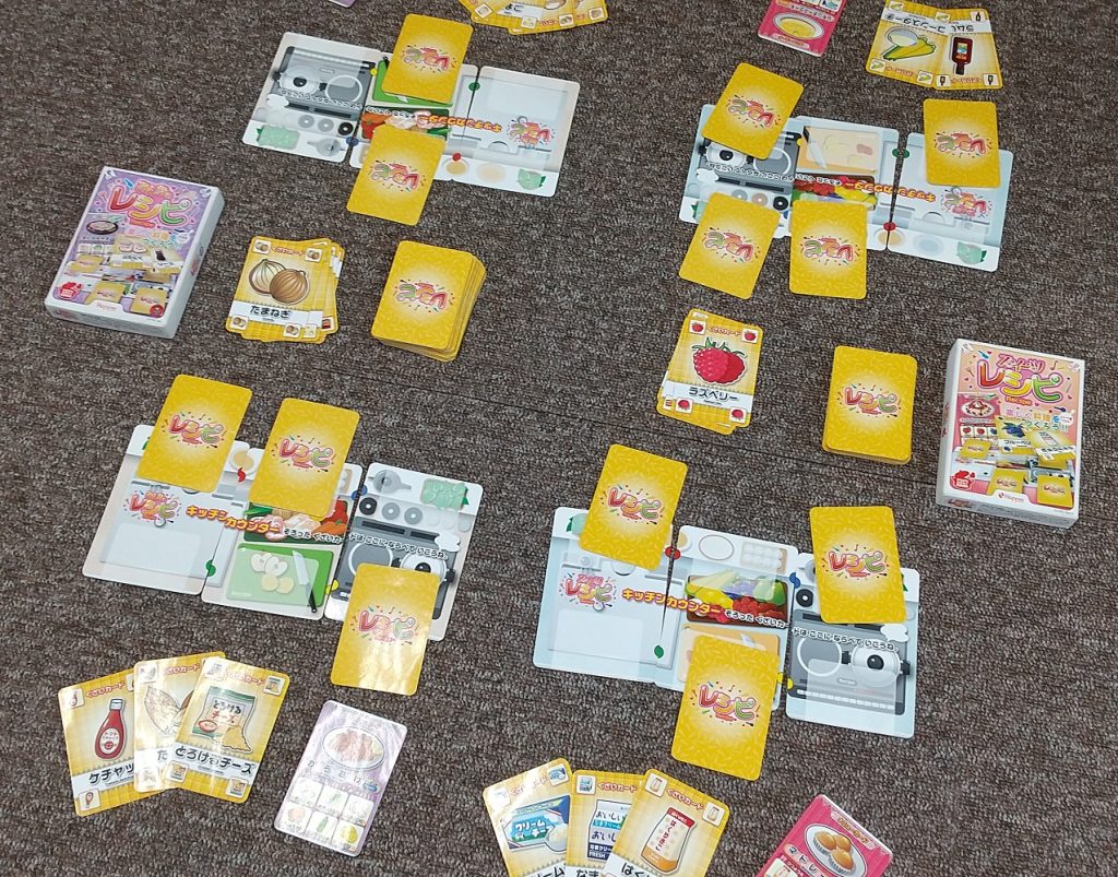 具材カードを表に向ける遊び方は、一見すぐ相手に手持ちカードがわかってしまって楽しくないのでは、と思いますが、最後の1枚が誰がもっているか、いつ出るかとワクワクドキドキと楽しめます😆
