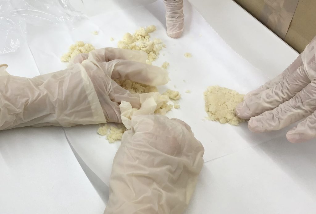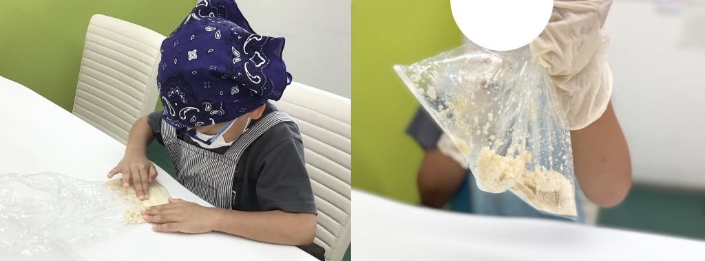 ②まとまりが出てきたら、クッキングシートの上で形づくりをします💡