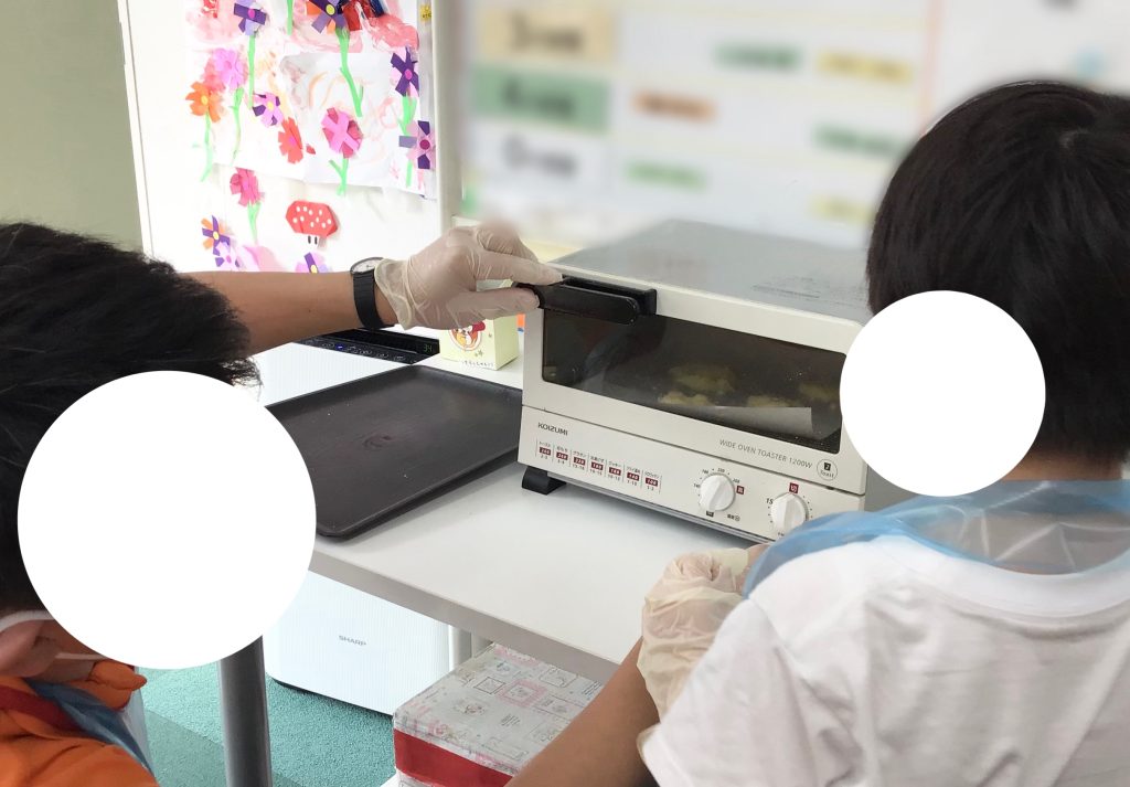 ③トースターで7分間焼きます💡 ※トースターには、職員が入れています。