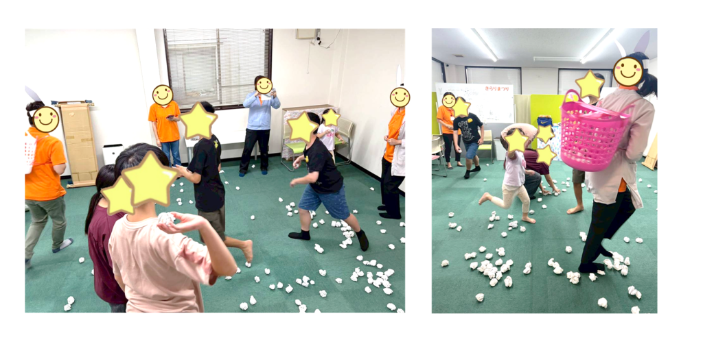 “1つずつ投げましょう”というルールを守りながら、みんな必死でかごに入れていました!