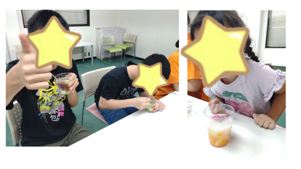 最後に、もう一度しっかりと手洗い消毒をして、フルーツポンチをいただきました。