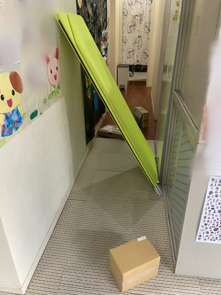 移動訓練では、実際に廊下に障害物を置いて行いました!