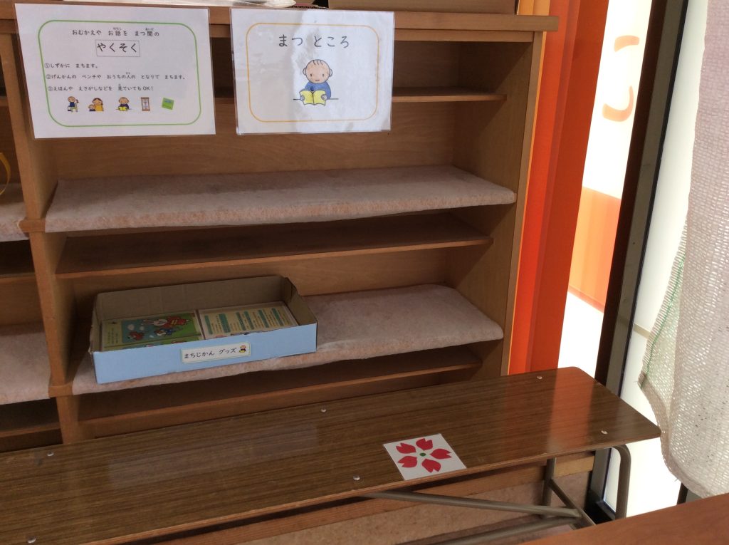 帰りの申し送り時に、お子様が玄関で待てるように、椅子やクイズを置きました!