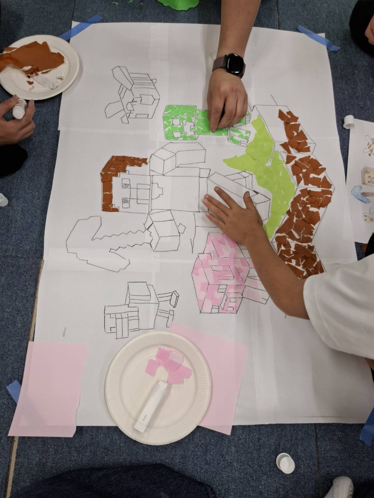 小学生以上のお子さんは巨大ちぎり絵をしました。