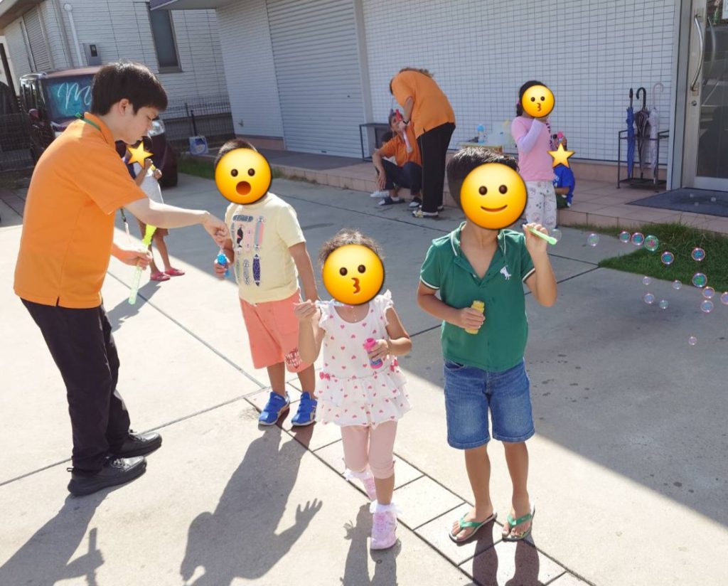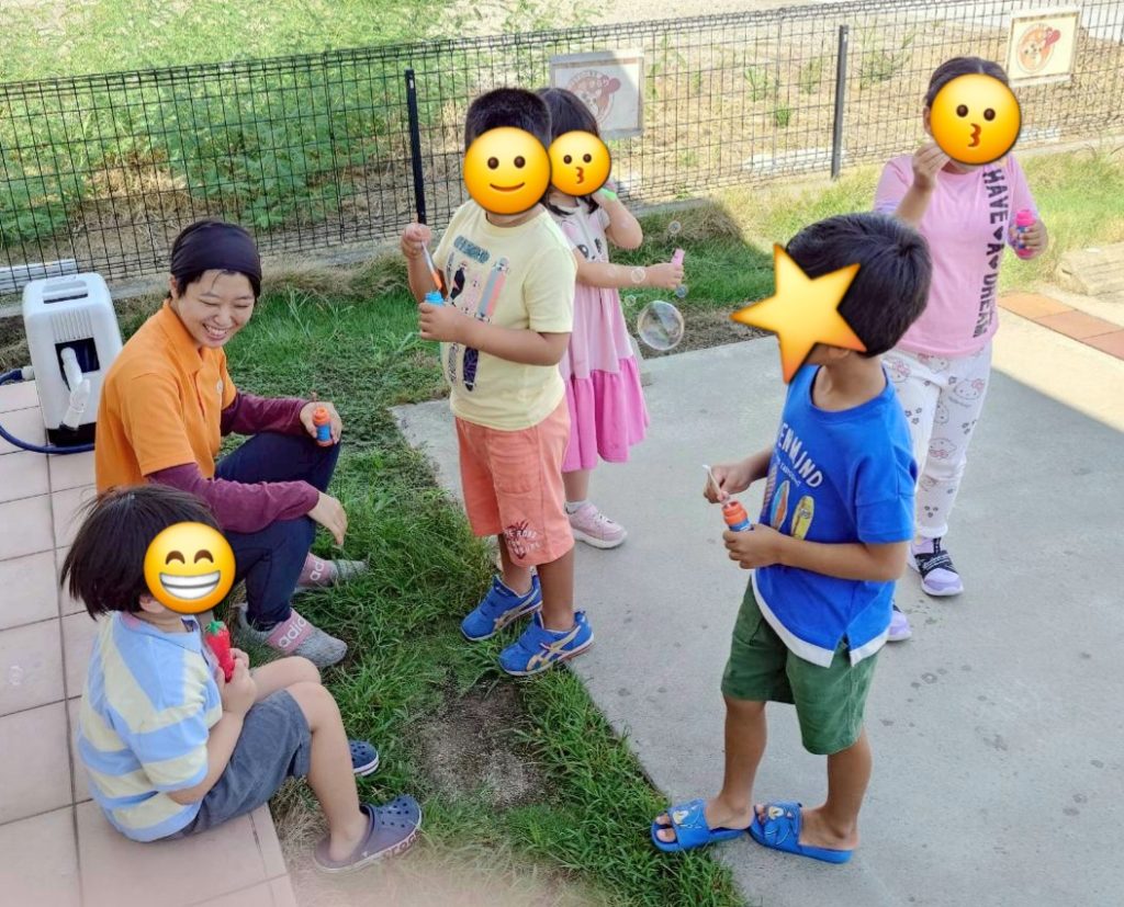 ふわふわとたくさんのシャボン玉が舞う様子を見て、みんなとても楽しそうにはしゃいでいました🤩
