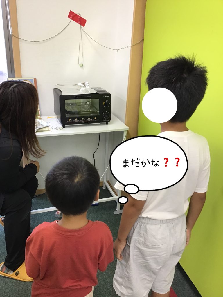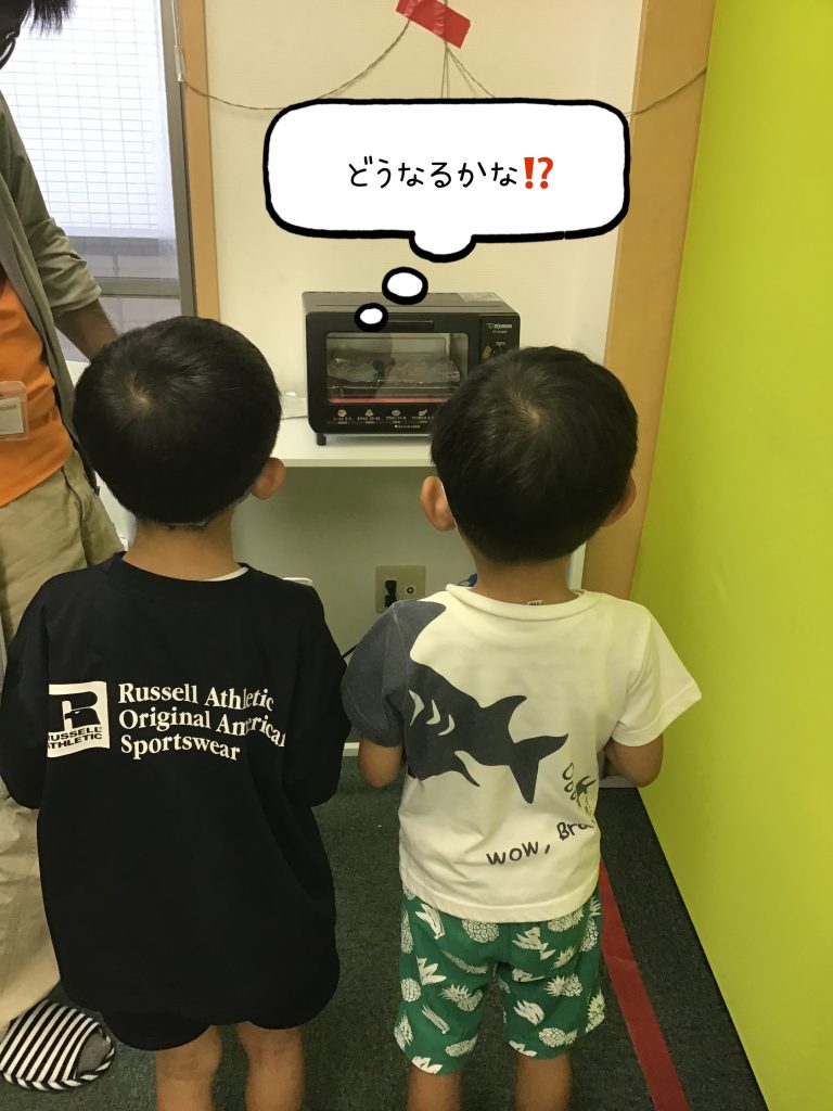 トースターで焼くと、プラバンが小さく縮んでいく様子に「どうなるかな❓」と見守る後ろ姿がとても可愛らしかったです👀💞
