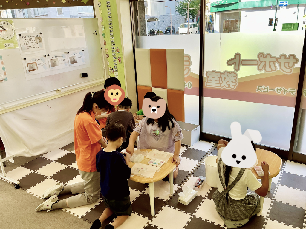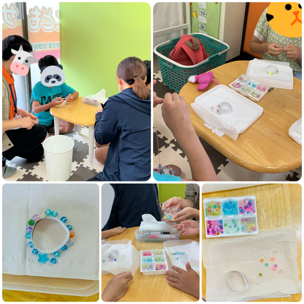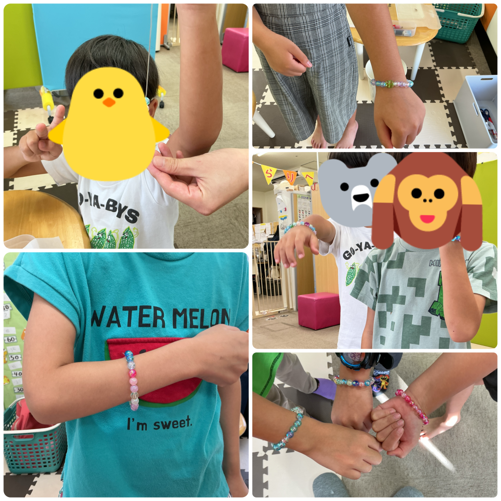 完成したブレスレットを腕につけて、嬉しそうに見せてくれる子どもたちの笑顔がとても印象的でした。お友だちと見せ合いっこをしたり、大切そうに眺めたりする姿に、私たちも温かい気持ちになりました。