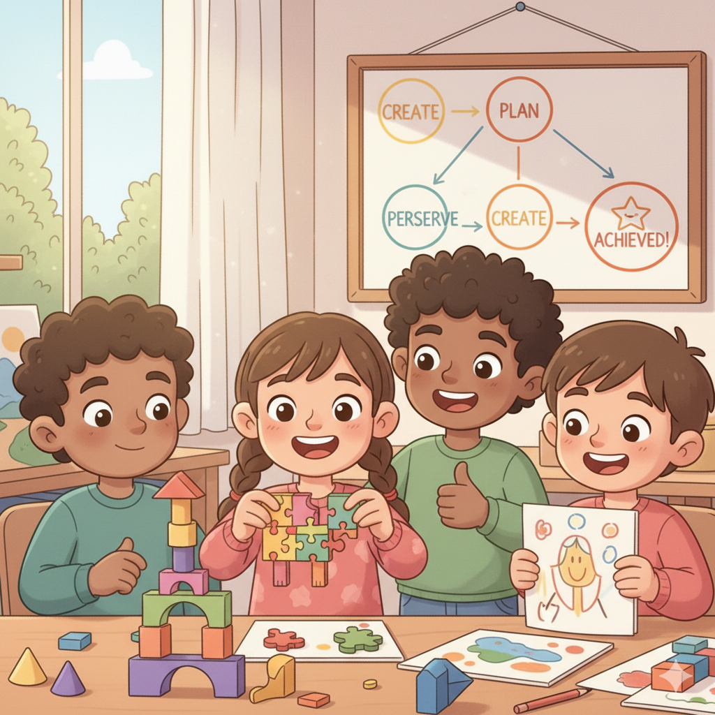 見通しを立てる力を育む:完成までの手順を理解し、それに沿って作業を進めることで、見通しを立てて物事に取り組む練習になります。