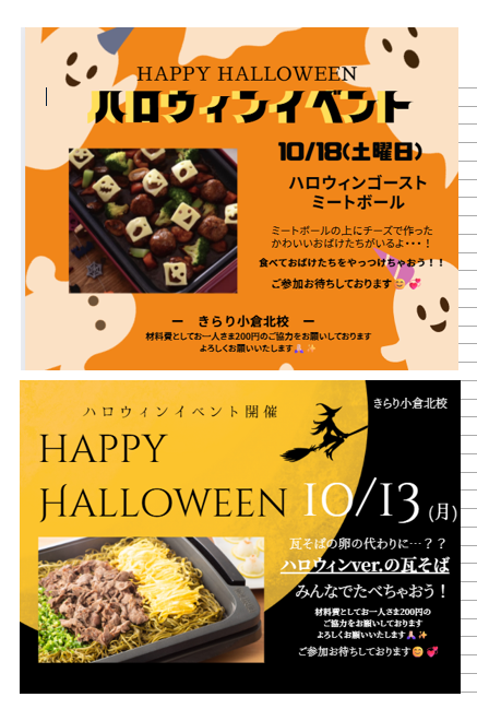 ☆10月18日 (土) ハロウィンクッキングPart2🦴🎃