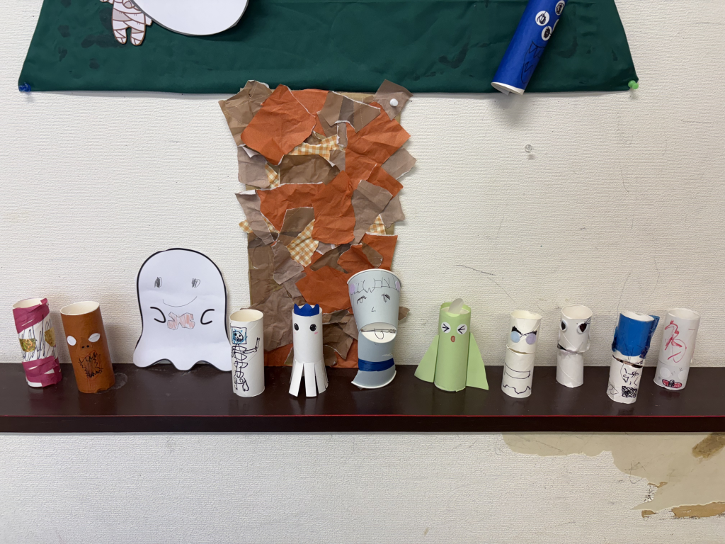 トイレットペーパーの芯を再利用して、お友達がおばけを作ってくれました👻