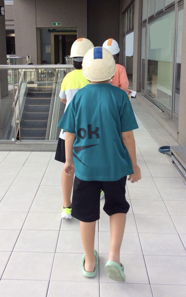 すぐにヘルメットを着けて、先生と一緒に避難。🚶🚶