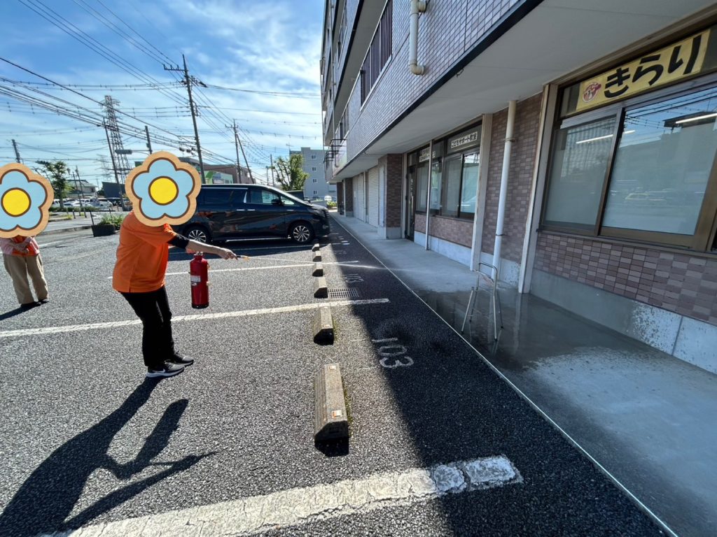 消防署から水消火器をお借りして、指導員で消火訓練を行いました!