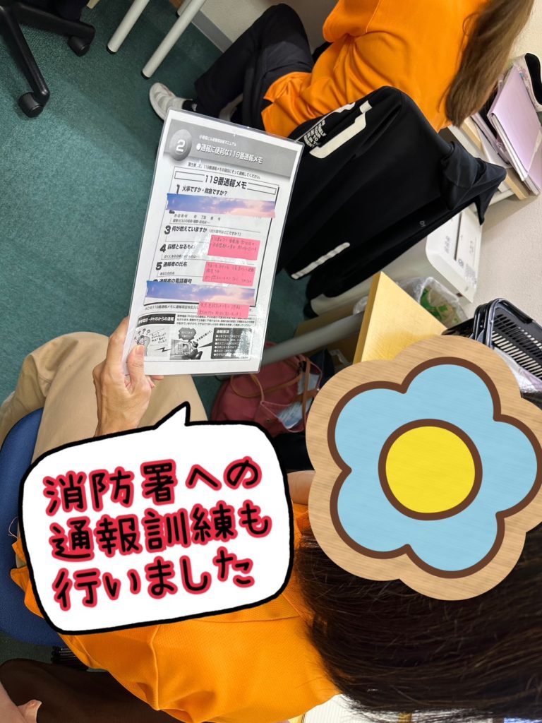 代表の指導員が119に電話をかけ、訓練という旨を伝えます☎️