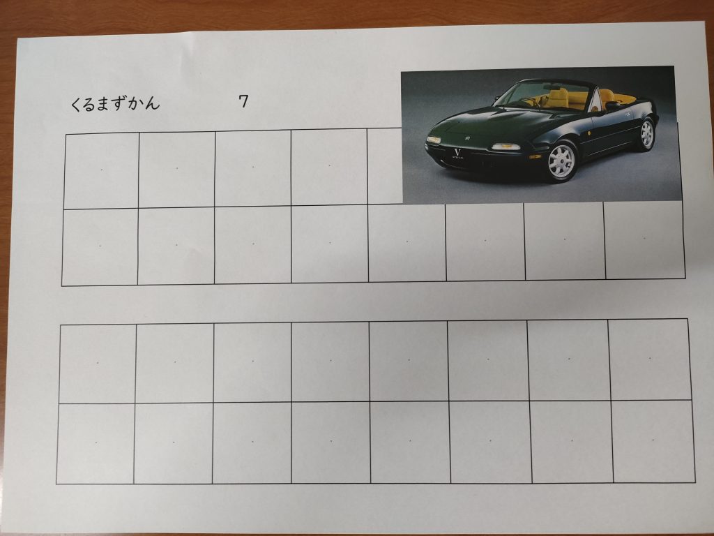 さて、次は別の車の「くるまずかん」づくりに挑戦。次の写真をご覧ください。