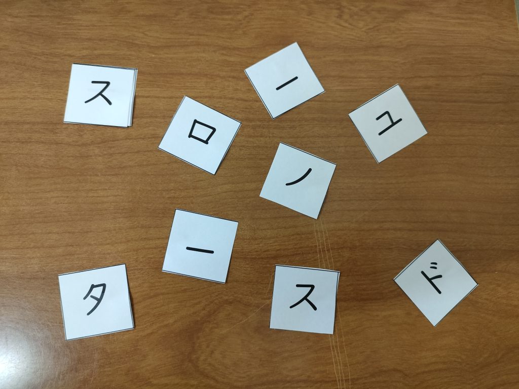 次にカタカナや数字、アルファベットで書かれた文字チップを正しく並べていきます。