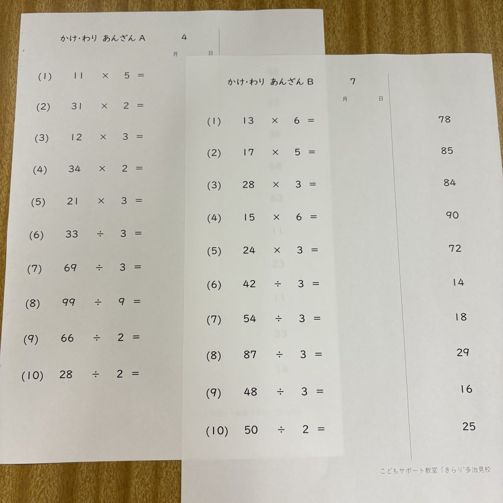 九九を覚えて、習熟がある程度できたお子さんむけのプリントです。