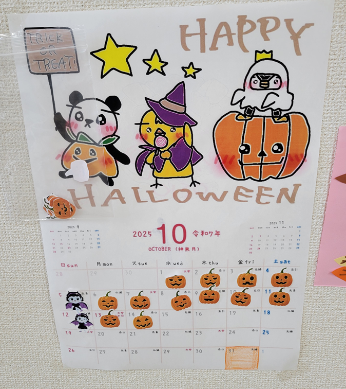 10月に入ってからは、カレンダーにおばけのシールを付けてパーティーの日をとても楽しみにしていました😁