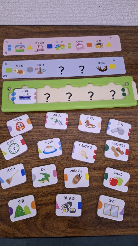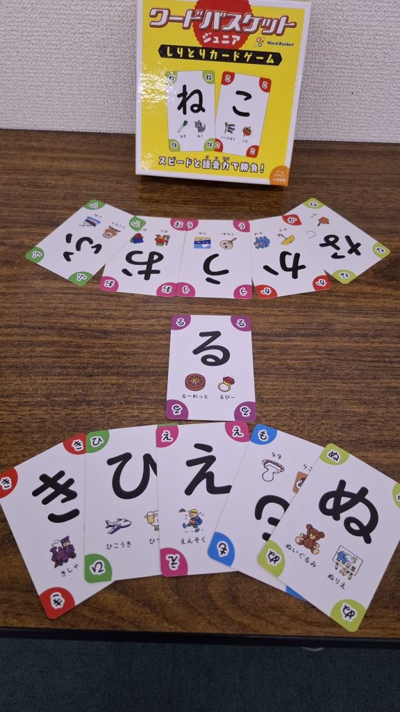 1文字ずつのカードを出していくゲームのため1文字ずつ意識することができ、音韻意識に繋がります✨