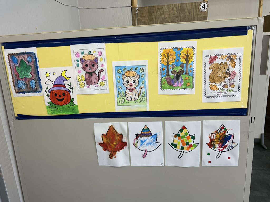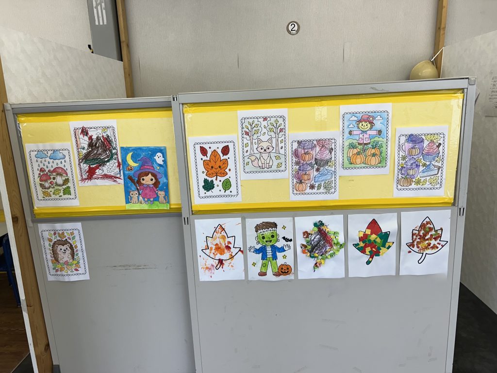 本日は鈴鹿校で子どもたちに行ってもらったハロウィンモチーフの塗り絵を教室内に飾ったので、そちらをご覧いただきたいと思います!