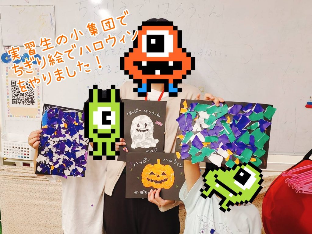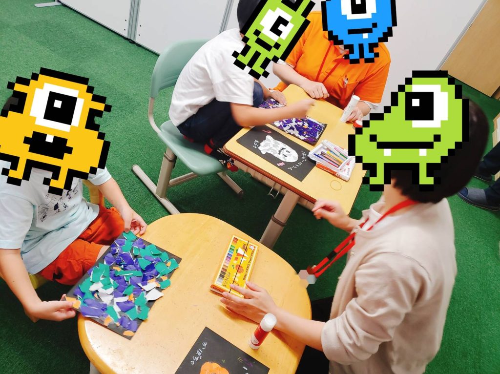 ということで、ちぎり絵でハロウィンの絵を作っています🎵