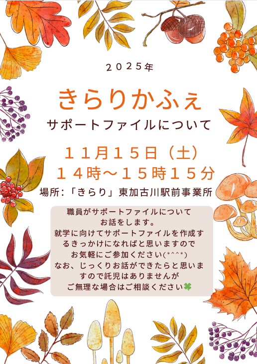 11月15日(土)に保護者向けイベント「サポートファイルについて」を開催します☘️