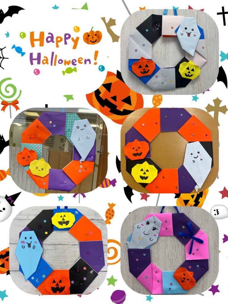 きらりでは、支援のお制作でハロウィンリースを作りました🌈