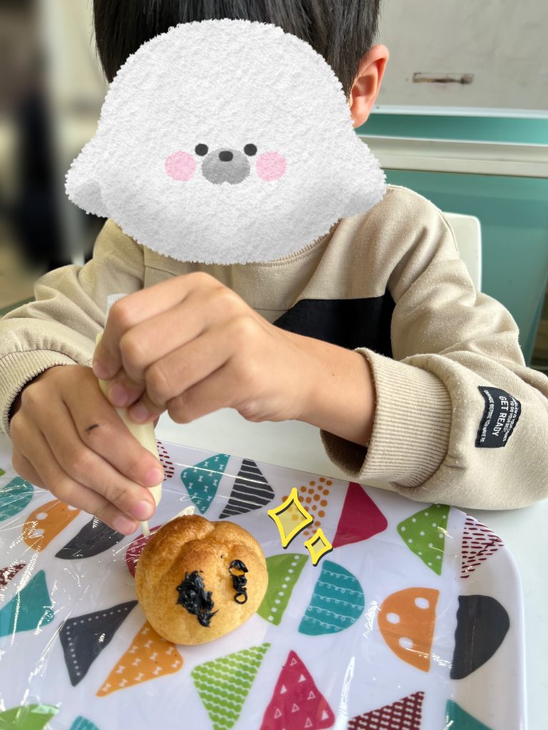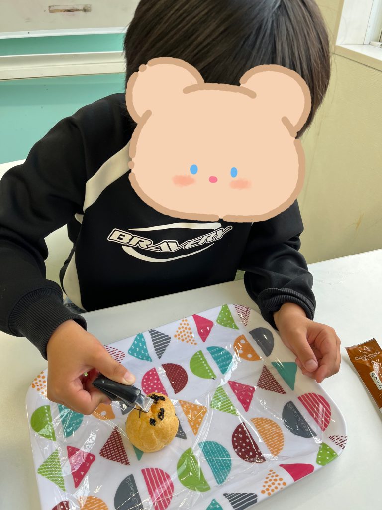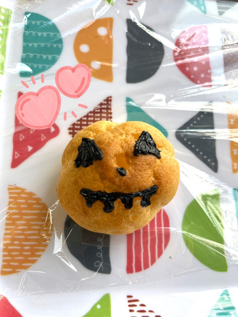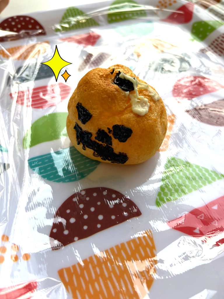 シュークリームをかぼちゃに見立てて