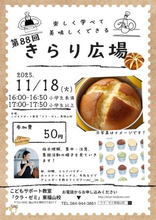 11月18日(火)にきらり広場「蒸しパン作り」を