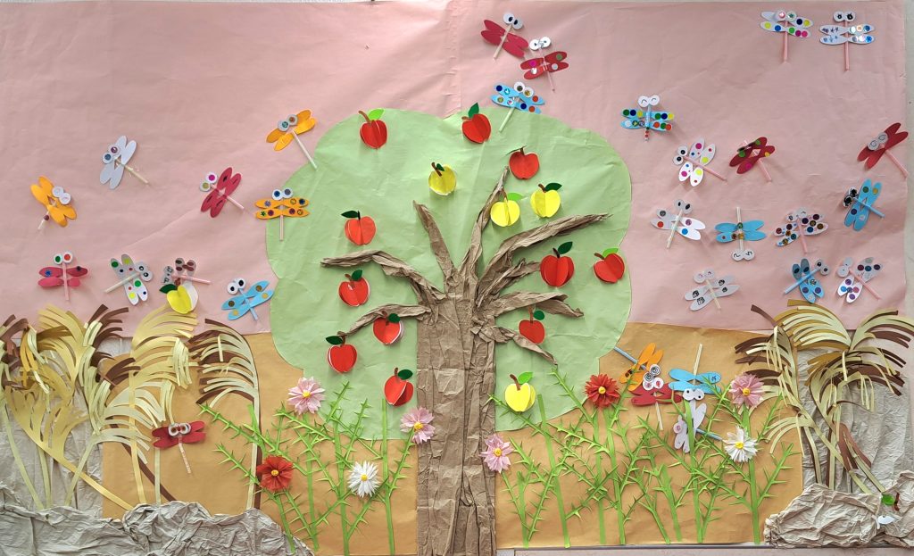 さて、9月・10月とみなさんの頑張りで「とんぼやりんご🍎」など秋らしい素敵な壁面が出来上がりつつあります。ありがとうございます😍