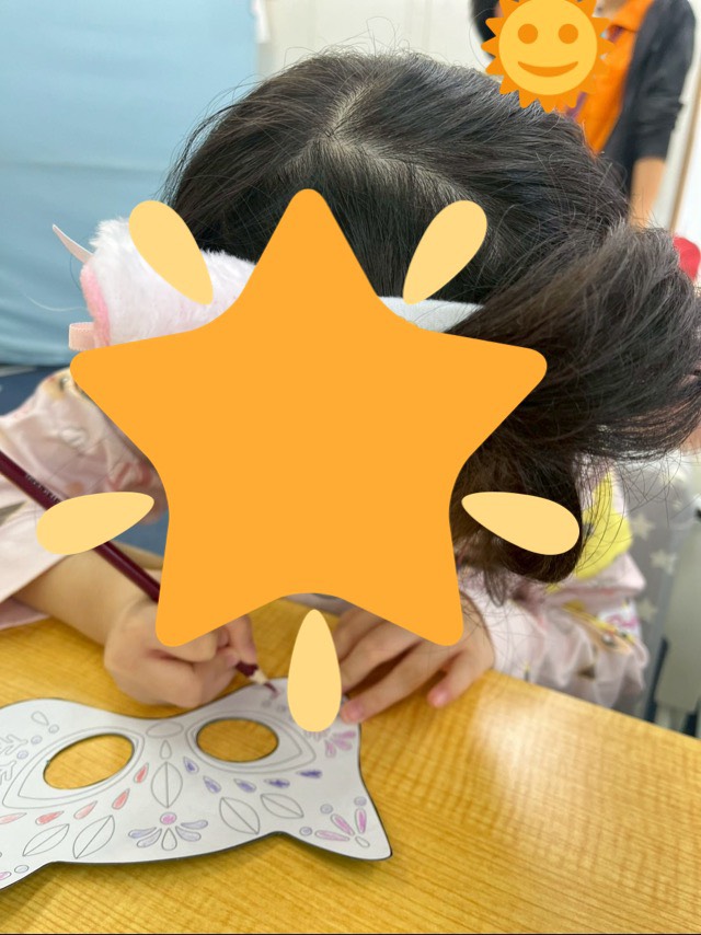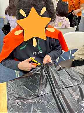まずは、仮装の準備として、「お面」「ハロウィンの洋服」の製作を行いました!!