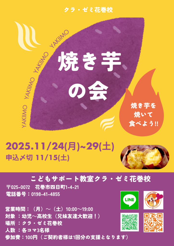 11月24日(月)~11月29日(土)の1週間、焼き芋イベントを開催します!