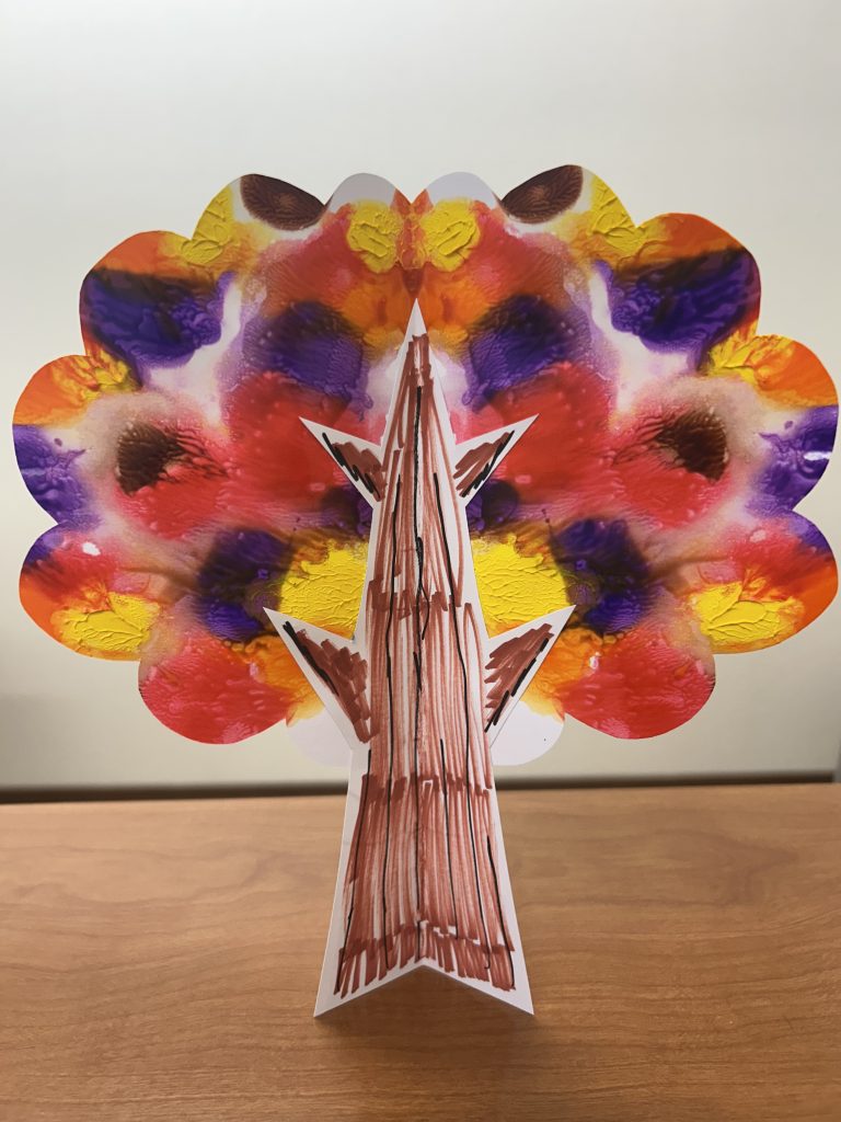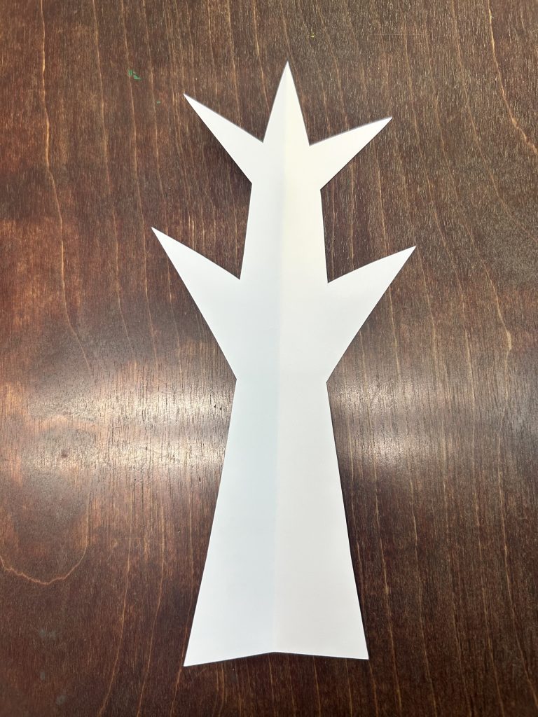 ⑥両面テープで木の幹と葉の部分をくっつけ、完成です!