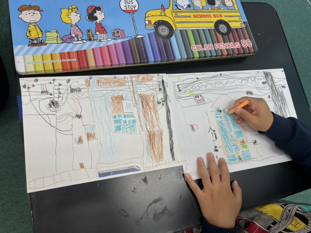 お子様「あと踏切も描こう。カンカンってするところがあるんだよ。