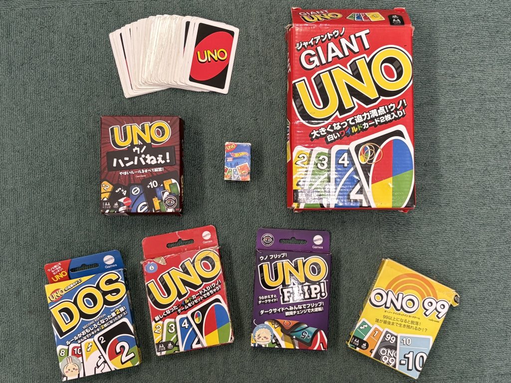 一般的なウノの他に大きなウノ、ルールが複雑なウノなどさまざなな種類のウノを子供たちと挑戦しています✨