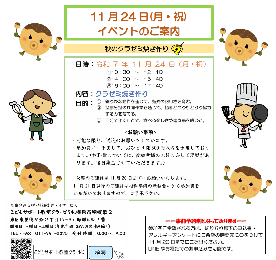 参加ご希望の方は、お気軽にこどもサポート教室クラゼミ 東苗穂校第二にご連絡ください📞