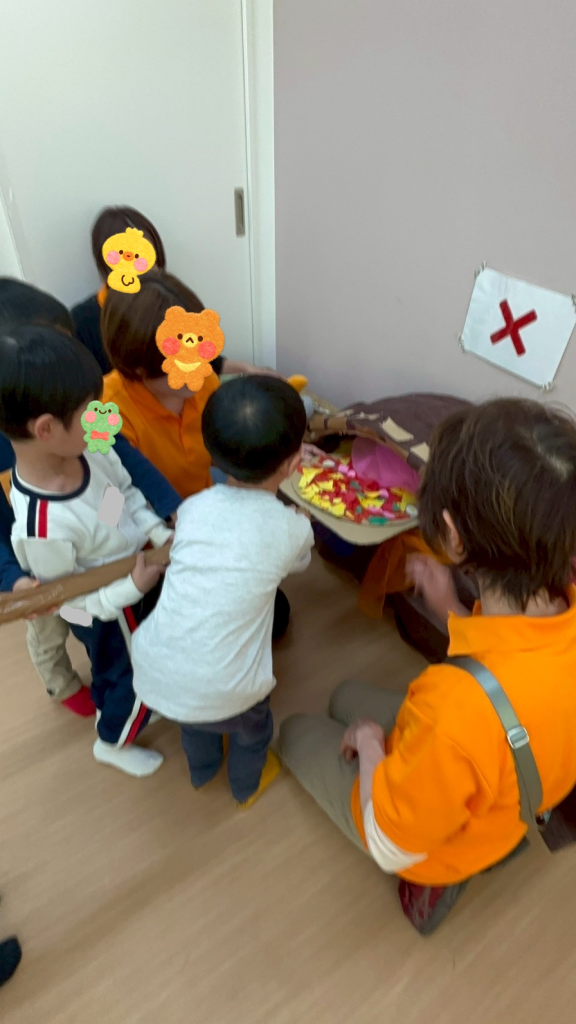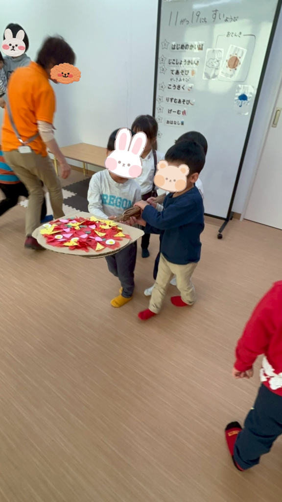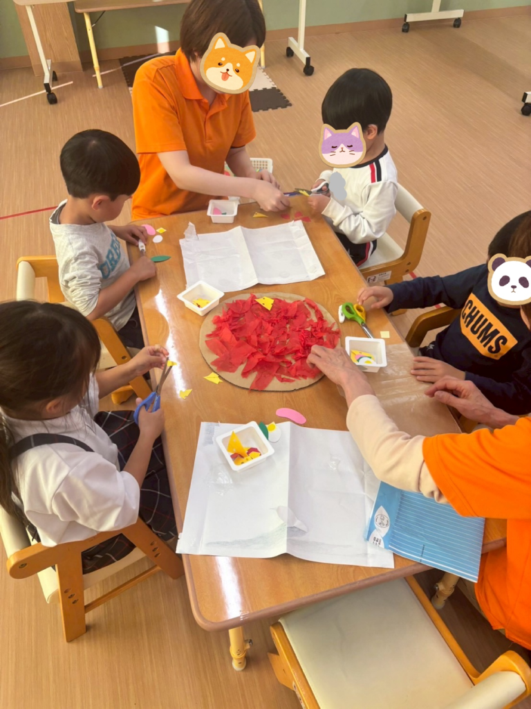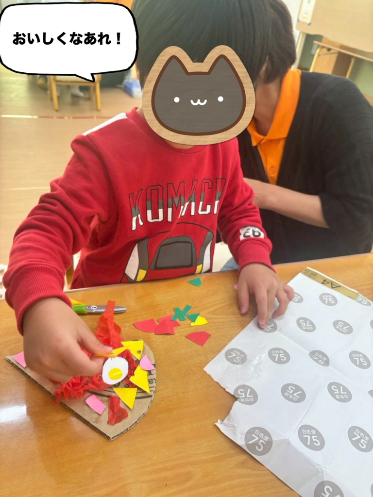 先日の小集団ではみんなで大きなピザを一つ、協力して作りました。