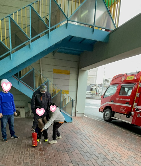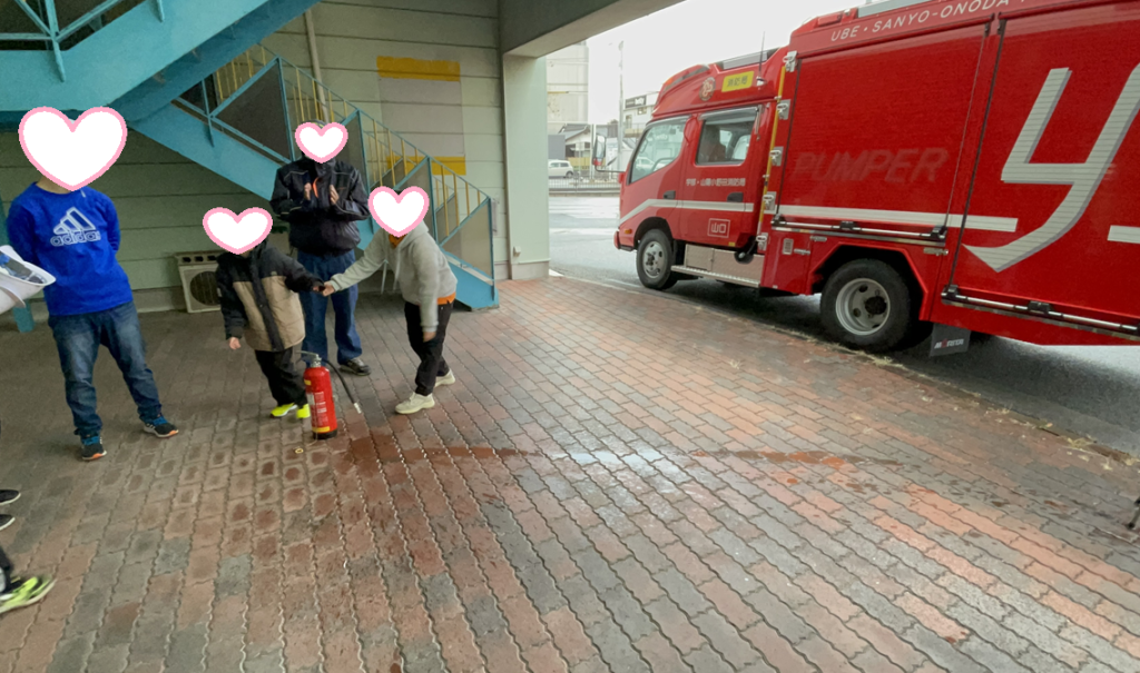 先日、山口宇部教室では宇部小野田消防署の消防士さんたちをお招きし、消火器の使い方を学ぶ防災イベントを開催しました。