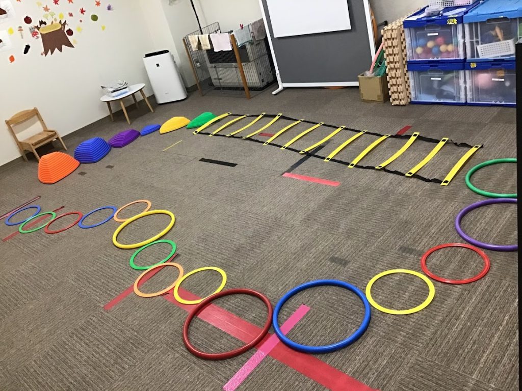 バランス感覚や協調運動(体を上手に使い、スムーズに動かす力)の練習に使用しています🤾♀️複数人で一緒に参加することで、正しい姿勢で順番を待つ練習の機会も設定しています🧎➡️