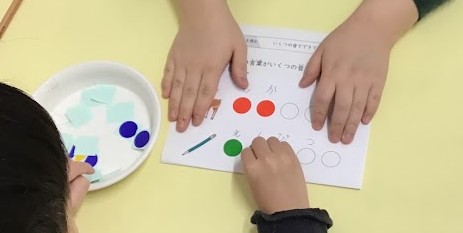 読み書きや発音練習の土台となる「言葉を音としてとらえる」練習を行っている様子です🎵シール貼りだけではなく、運筆練習やひらがな練習などの就学に向けた活動にも取り組むことができます。