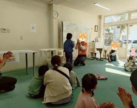 今回も最初に絵本を読み、その後は「パン屋さんにお買い物」の手遊びを