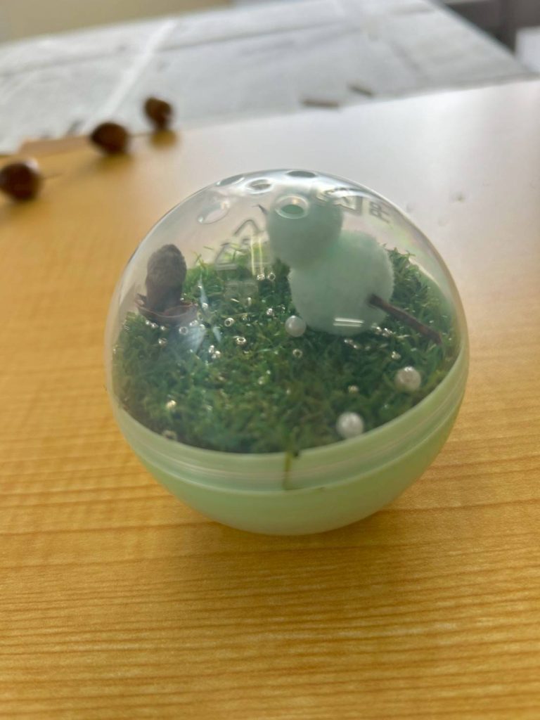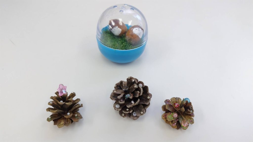 そしてきれいな色の葉っぱやどんぐり、枝等を拾い11月24日に自由にイメージしたものを形にしていきました。