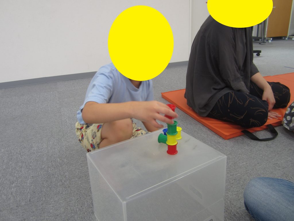 お父さん、お母さんと協力してブロックを高く積み上げるゲームでしたが…